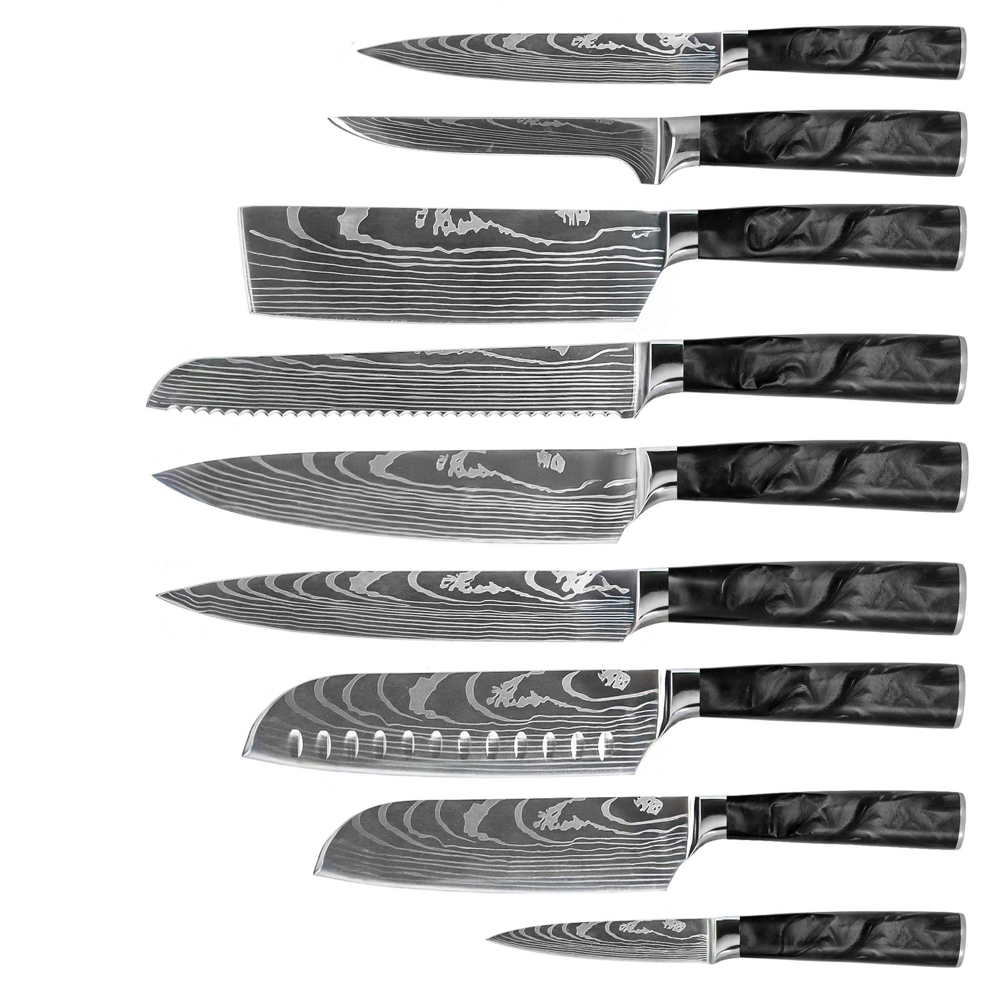 DAMASCUS PRINT ONYX EPOXY - 9 PIECE KNIFE SET