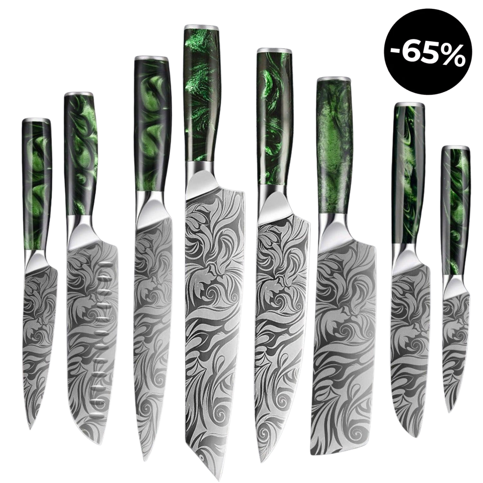 Japanese Style Kitchen Knife Sets - Green Rose Handle
