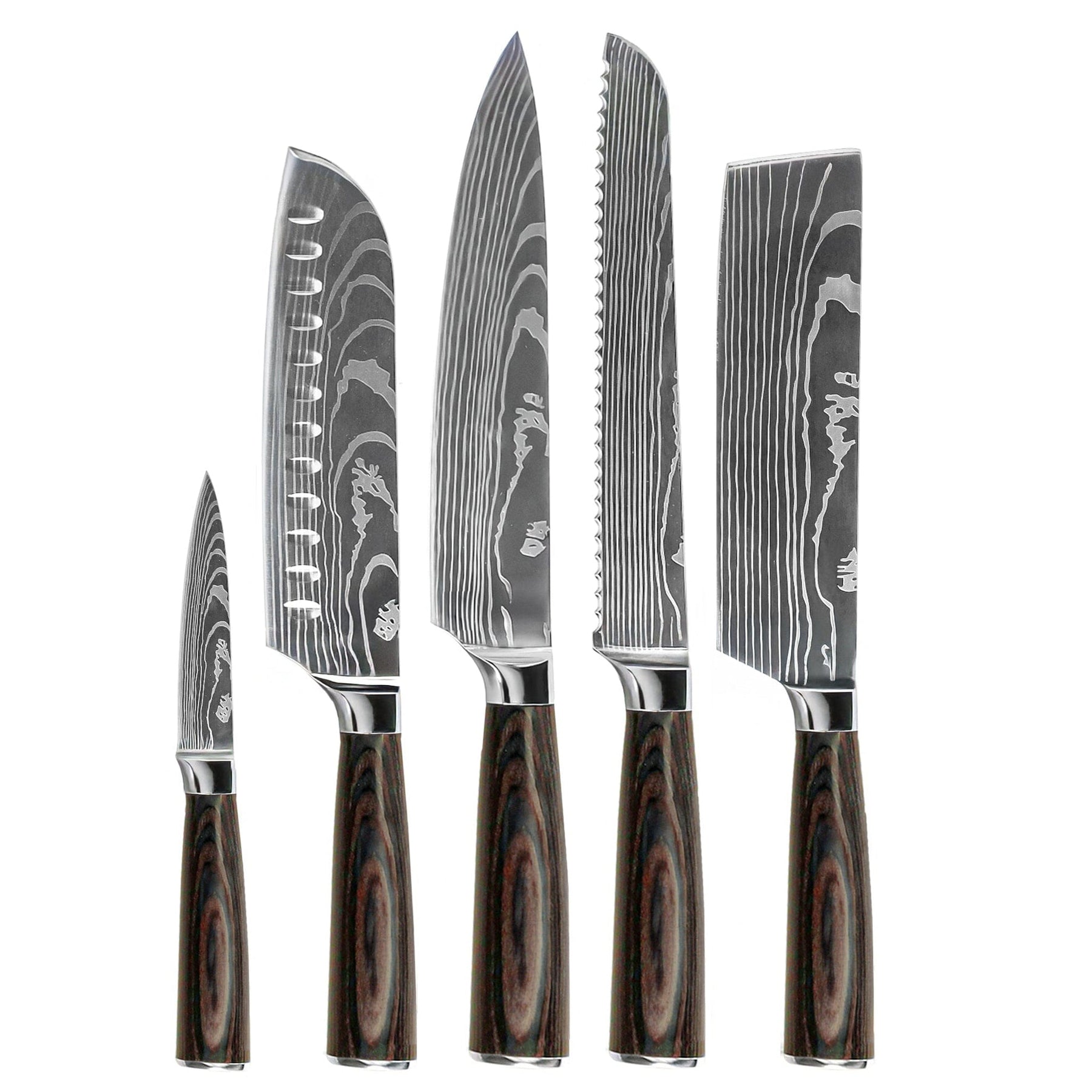 Five essential knives, one smart bundle. High-carbon steel with Damascus patterns at a great price.