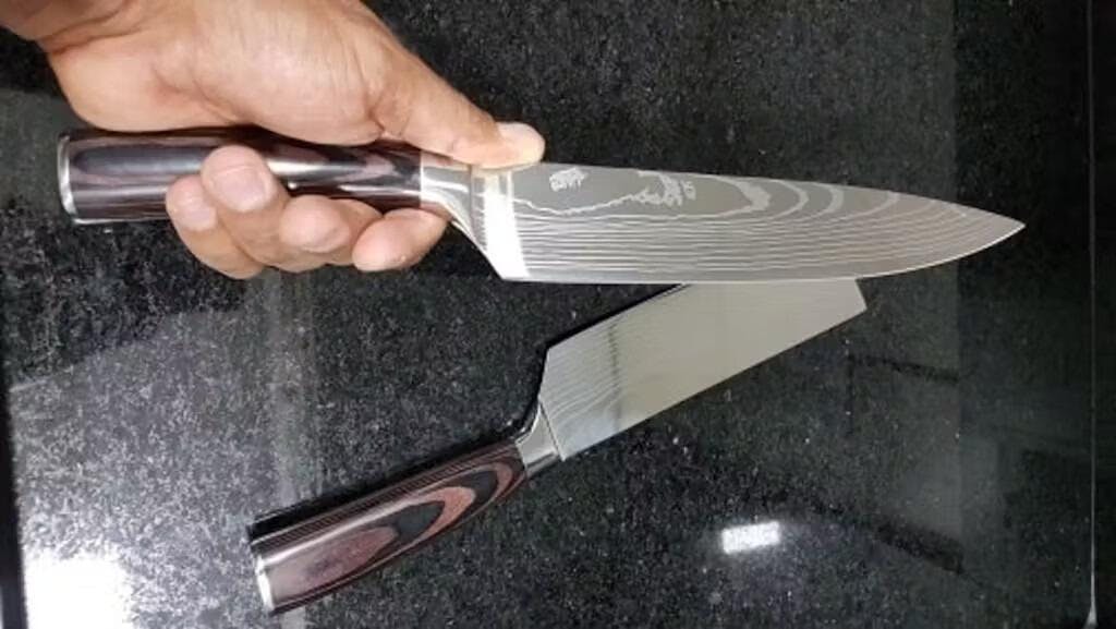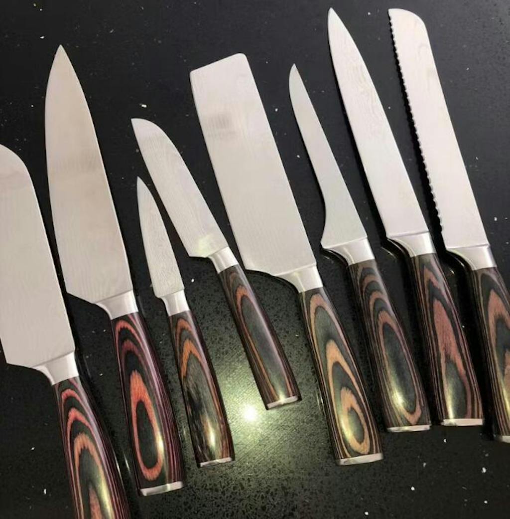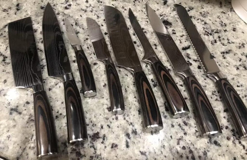 I never thought I would be so happy to receive knives. This knife set is amazing and completes my kitchen. If i can give it 10 stars i would. The Damascus pattern on the blade is very pretty. the handle is nice and comfortable. It's very sharp and cuts super well. I strongly recommend! I will buy another set for my mum!