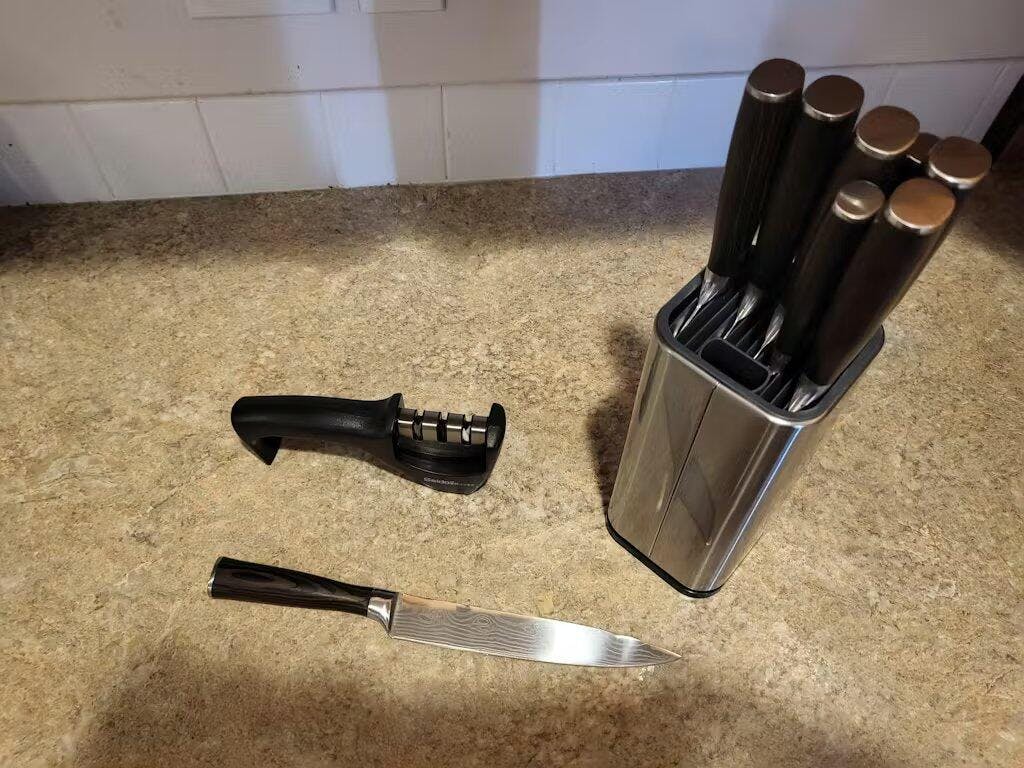 Absolutely thrilled with this knife set. Very sharp and well-balanced to hold. Would buy again in the future.