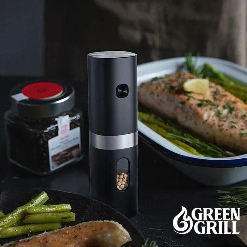 Transform your culinary experience with the Green Grill Electric Salt and Pepper Grinder - the indispensable kitchen companion for those seeking unparalleled convenience and modern elegance!