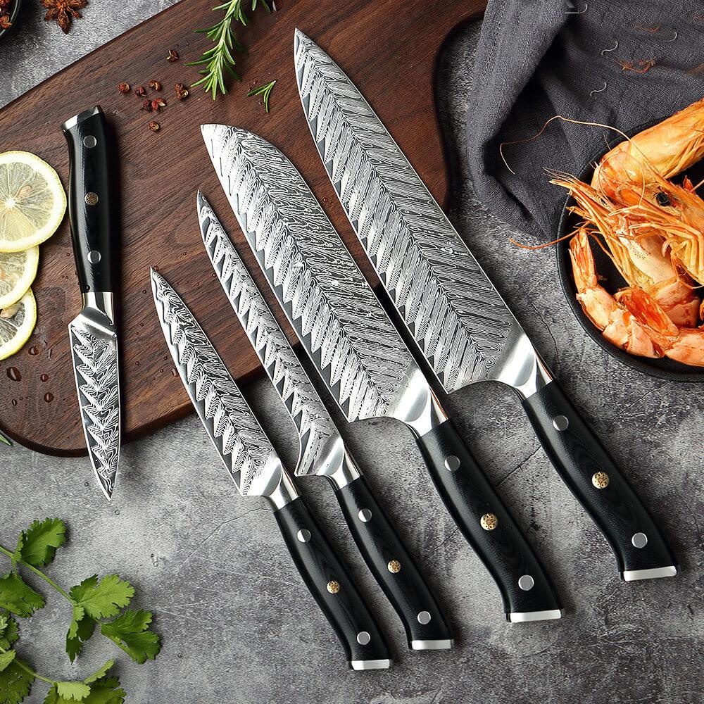 - Exquisite And Beautiful - The fishbone pattern of the knife is a natural pattern of Damascus steel. After special treatment, the pattern looks more beautiful and more upscale. When you first see this knife set, its luxurious decoration will appeal to you.
