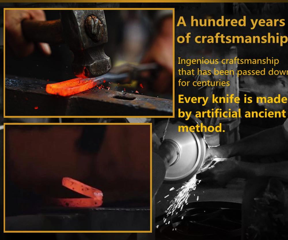 Handmade Damascus kitchen knives are made of a forging process. It is generally made of a combination of hard and hard materials that are forged together. The steel is forged and toughened with both toughness and hardness. Make the knife sharp. Suitable for cutting a variety of foods.