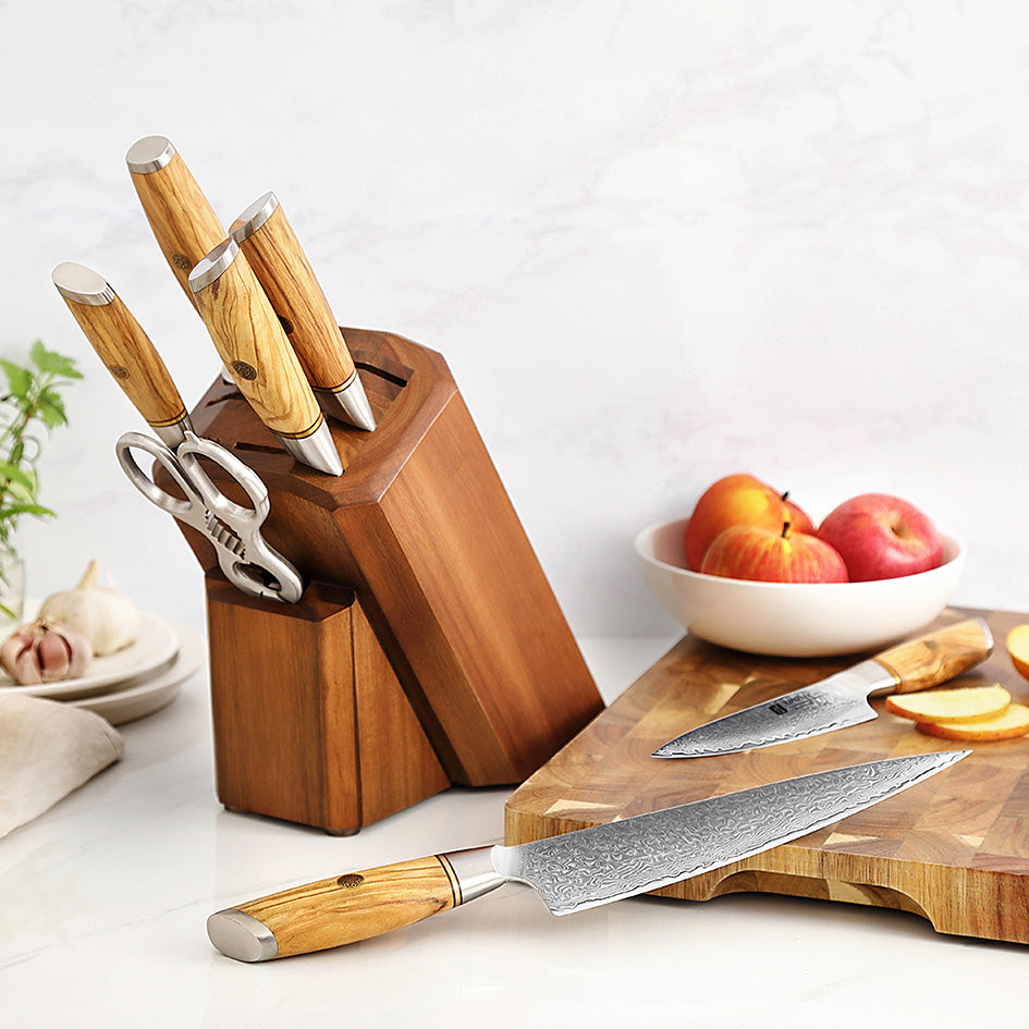 Transform Your Culinary Artistry with the Exquisite Knife Set with Damascus Steel and Olive Wood